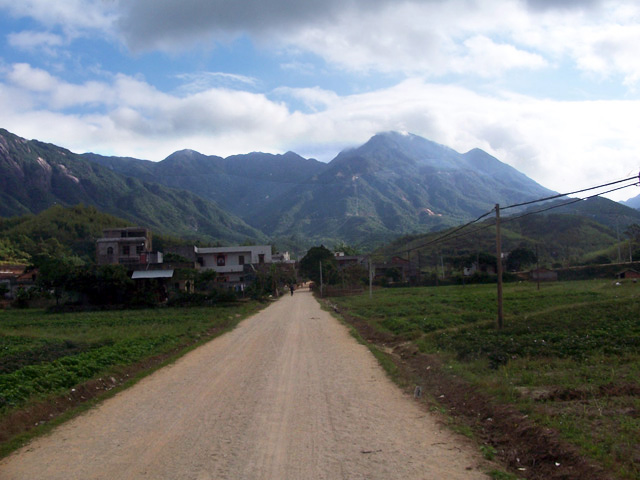 进山~~~~这是里联盘地,道路直指前方尖峰就是鹅凰嶂。