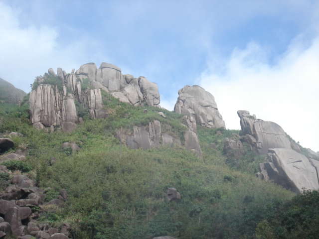 6台大巴载着180人向着鹅凰嶂进发,这又是一次百人行,我已记不清这是阿翔第几次组织的百人行了,我佩服阿翔的号召力,也不得不承认他选点很有眼光。鹅凰嶂于我并不陌生,去年我自驾走了一趟,那次天清气爽,阳光普照,鹅凰嶂将其秀美一展无遗,形态各异的奇石,如波似浪的山丘,白云驻足峰顶的仙境,每每想起,我都有重游之意,阿翔这次组织的出游,满足了我的愿望。人就是有个惰性在作怪,没有别人牵着你,就懒得去动,那怕是自己最喜欢做的事。