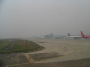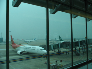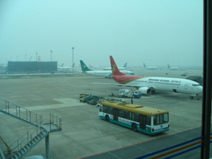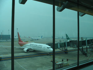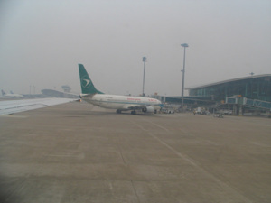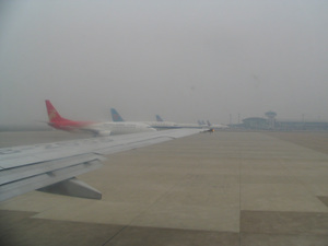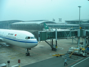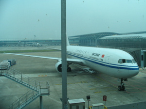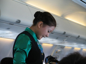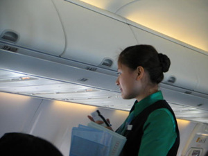 在飞机上。