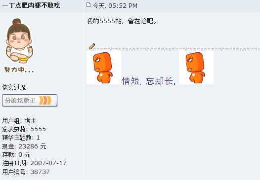 一丁点肥肉都不敢吃 老实过鬼 荣誉会员 注册 2007-07-17 消息 16,134 反馈评分 19 点数 61 2010-10-28 #12,252 留念5555.[attachmentid=247740] 附件 呵呵.jpg 66.4 KB · 查看: 469