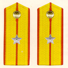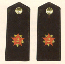 曾经的革命者 教练 荣誉会员 注册 2006-11-17 消息 2,940 反馈评分 58 点数 71 2006-12-12 #1 解放军陆军军衔――将官 (1):陆军上将为我军现行军衔制中陆军最高军衔、军衔条例规定,中央军委副主席、军委委员、总参谋长、总政治部主任一律授予陆军上 将军衔。陆军上将还是正大军区职军官的主要军衔。正大军区职包括副总参谋长、总政治部副主任、总后勤部部长、政委、大军区司令员 、政委等。注:黄的为肩章,绿的为软肩章 附件 56106.jpg 60.5 KB · 查看: 191 56249.jpg 39.9 KB · 查看: 190