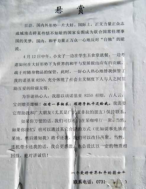 建议每个厕所都贴上呀! [attachmentid=124461] 这个让我无语..... [attachmentid=124462] 和<中央一套>有同工异曲之妙 [attachmentid=124463] 这个女孩的手机肯定找到了! [attachmentid=124464] 哥们!见了这样的广告一定要见一个灭一个呀! [attachmentid=124465]
