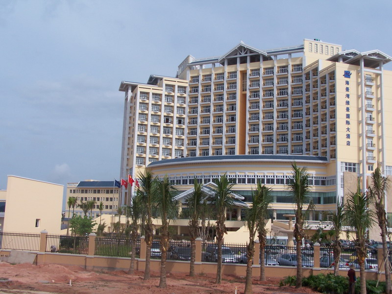 前天回了趟家乡,入住了最新的海景湾维景国际大酒店,如果外地朋友过去,坐车时直接说是"新一招"就好了.感觉价格相对同区的酒店有点贵,我们入住时是在试营业,因为没有向海房间了,我们只能订了不向海的标准间,价格也要208元.房间不算太大,但可以,有个小阳台.唯一不好的感觉就是:咸的海风让阳台成了装饰品,不敢站太久,因为站久了会感觉身上"粘粘"的感觉.
