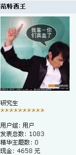 唉,本书生输就输在进这个论坛的时间比他们晚了,要不是的话,这就该是我做的了~~本书生别的绝对不会输给他们~~~~早晚我也要把他们拉下~~~~呵呵呵呵~~~反正我现在还年轻,我有的是时间,现在可是年轻人的世界了!!!!!~~~!