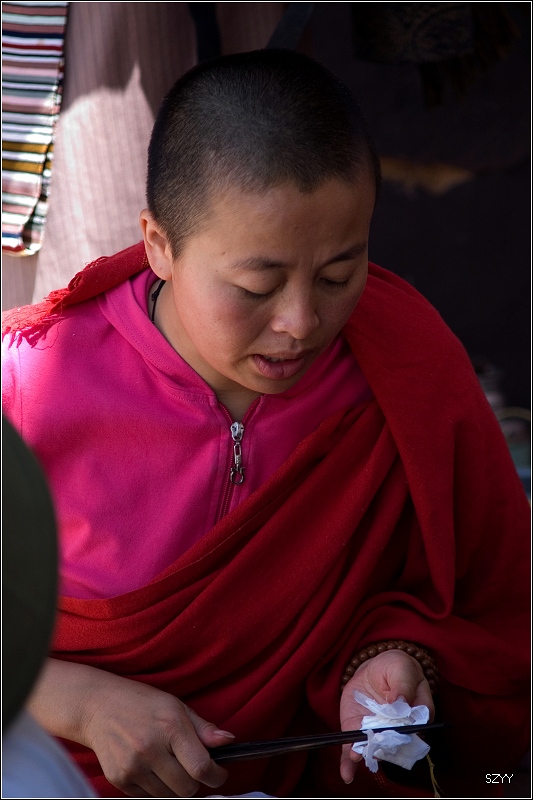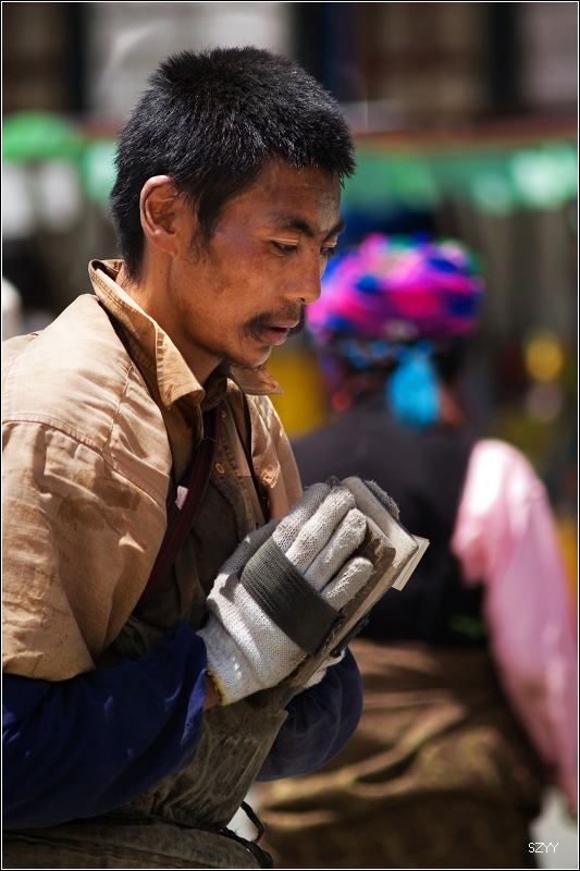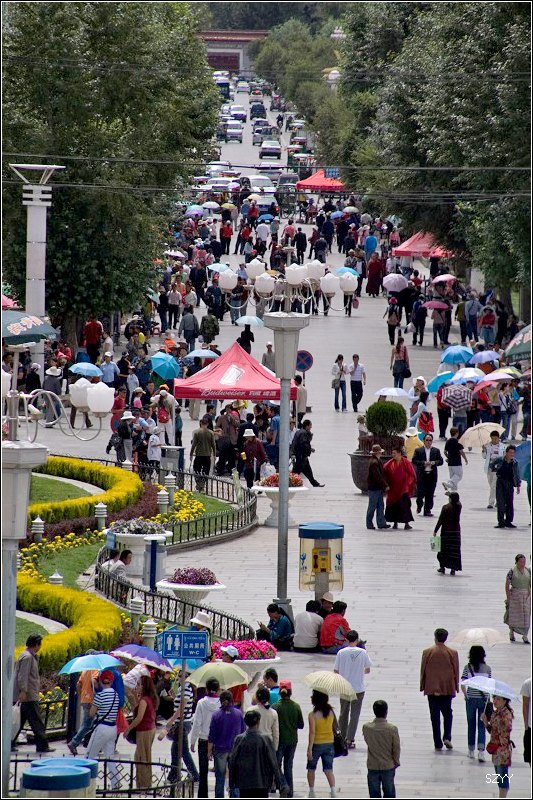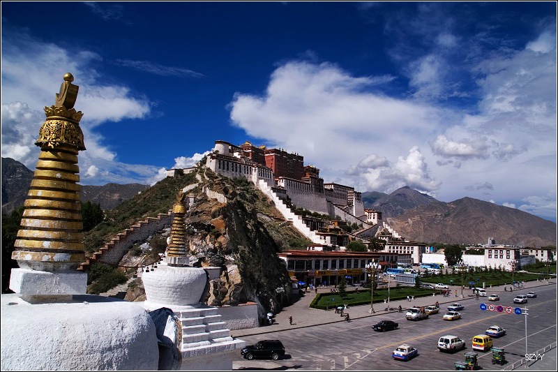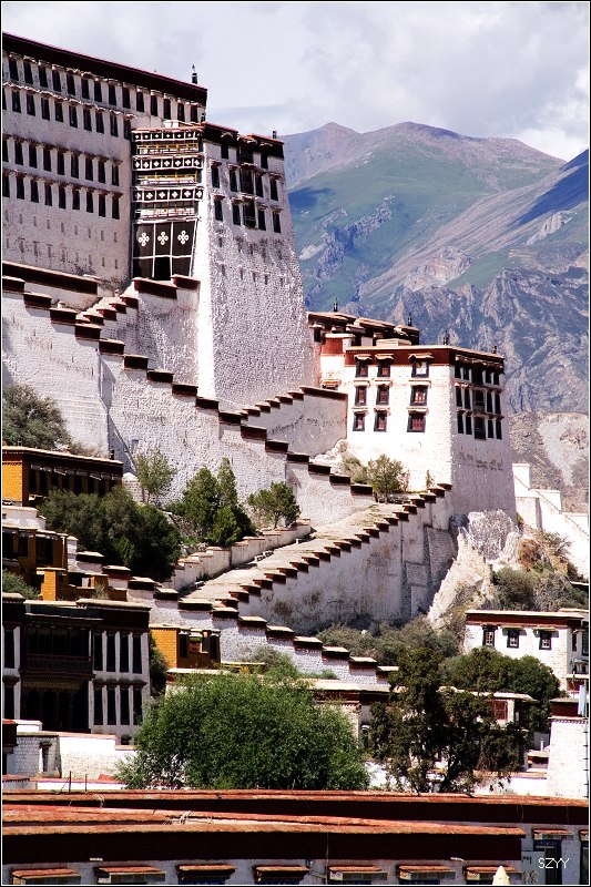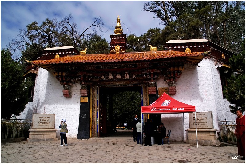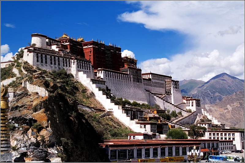 去布达拉宫,门票买不到,每天只卖出700张,当天即使买到也是第二天的票。排队买票要五六个小时,黑市票炒到500多一张,走的时候luck21cn兄介绍让我们到了拉萨,找西藏摄影家协会的副主席帮忙,那是他的朋友.可是我们想了想,还是不要给人添麻烦了,再说对宗教了解不多,布宫里面也不让拍照,还是决定暂时不进去了,回程的时候再看情况。在外面拍了几张布宫的照片。然后去了罗布林卡。