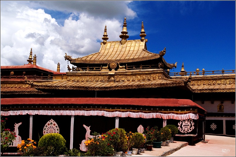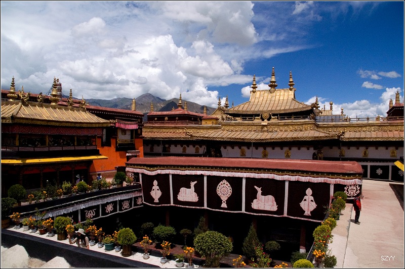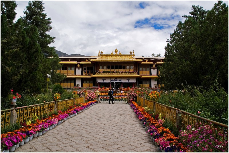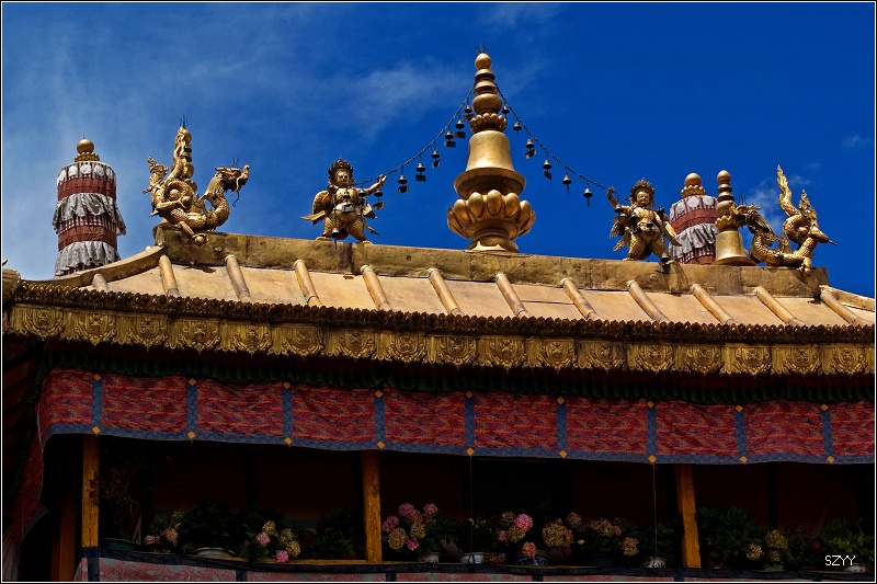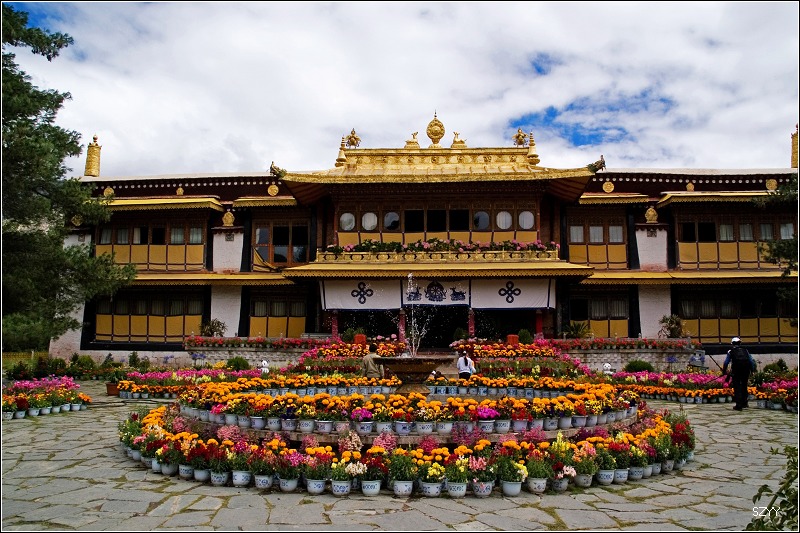 在西藏,无论寺庙还是民居,鲜花随处可见,这体现了藏族对生活的热爱。
