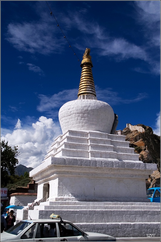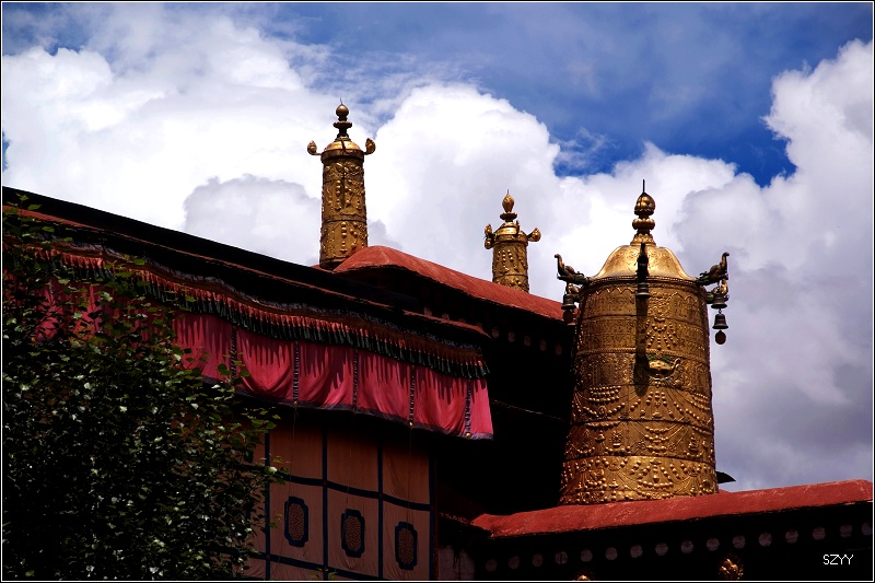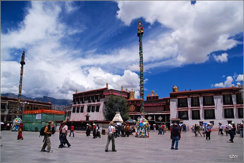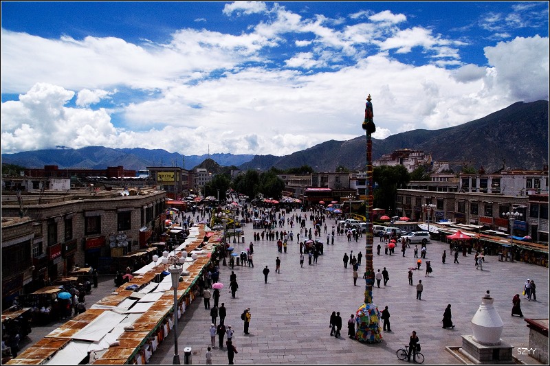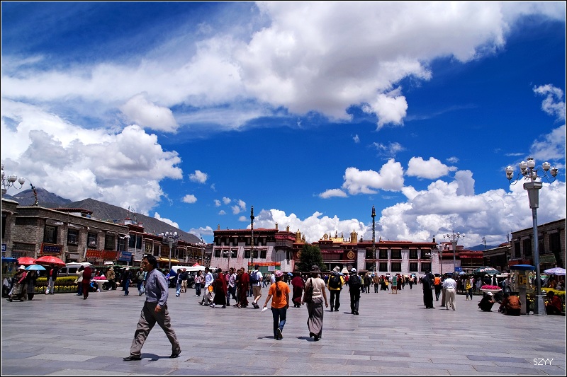 游览大昭寺后,回到广场,然后上药王山拍布宫,天气很热,可是由于怕感冒,我们不敢脱衣服,在广场上休息的时候,一阵阵风吹过来,有些凉。