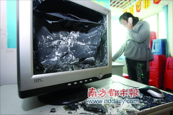 奥一网 昨日上午,季华五路东盛大厦7楼,专卖股票软件的某投资咨询公司内多部电脑显示屏被砸碎,公司员工向上级汇报情况。11时10分左右,4名怀揣铁锤、钢管的黑衣男子闯入,一言不发动手开砸,5名职员被打伤。公司方怀疑是同行竞争冲突引起。