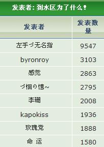 发表者: 到水区为了什么! 发表者 发表数量 左手づ无名指 9547 byronroy 3103 感觉 2863 づoの~ 2795 李珊 2004 kapokiss 1936 玫瑰党 1888 命 运 1580 煎炳全 1503 暴风水神 1111 刀母头 1092 xianren 1013 子谦 965 白衣书生 881 大胶吹 760 赵本水 594