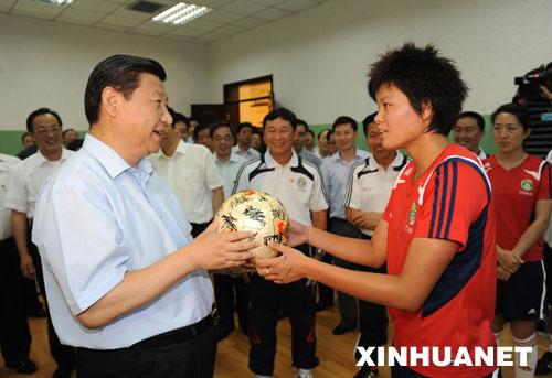 组图:习近平在秦皇岛奥体中心踢足球