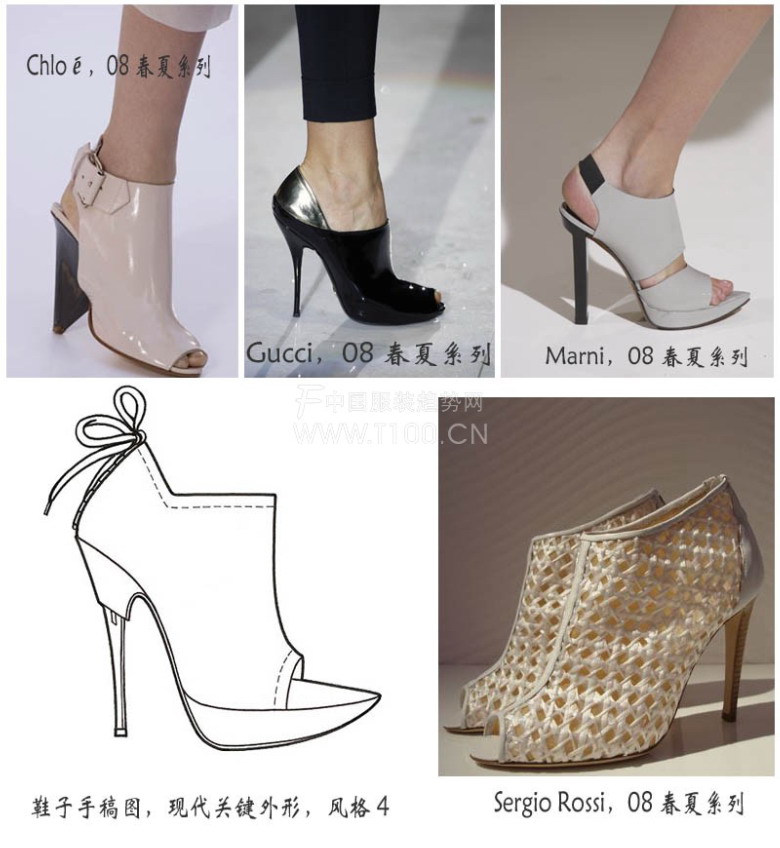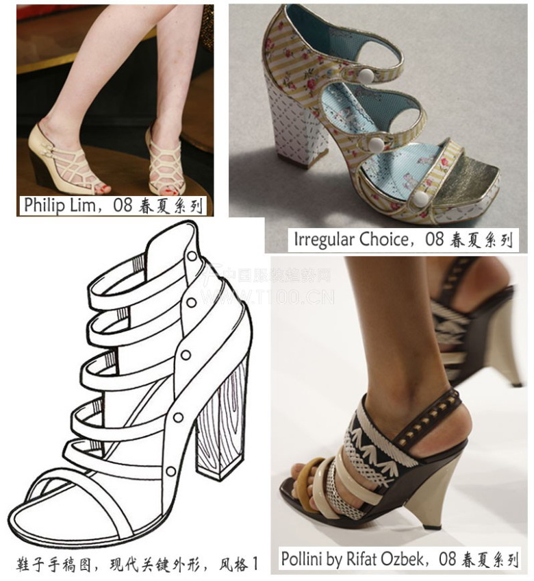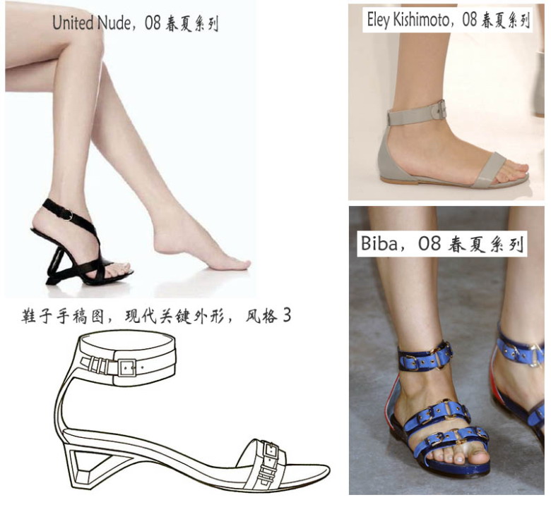 以下是为08春夏女装现代类鞋子而设的关键外形和细节: