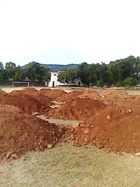 泥浆不是问题(到时会盖上一层黄土,再通过用压土机加压,踢起球来就会很舒坦),修理好之后将会是树仔历史上最漂亮的足球场!