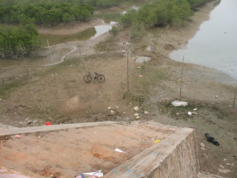 海堤。小时候经常和同学从这里下去赶海,卷着小裤脚,抓了很多杂七杂八的东西上来。有一次玩得兴奋,忘记了时间,涨潮了,被赶海回来的大人们碰到提醒。于是跟着他们快走。可是我们几个人小腿短走得慢,还差四步才到达这个楼梯口的时候,海水已经浸到了大腿。吓得眼有点红了。幸好那些大人和大个一点的同学相互拉一把才安全回来。上岸后,怕家里人骂,把拾来的贝壳都丢在海堤上。 曾经有很长的时间,这里成了晚上吃夜宵的好去处。后来为了保护水东的生态,拆了这些建筑,重新种上红树林,现在这里成为早晨看白鸟的好地方。