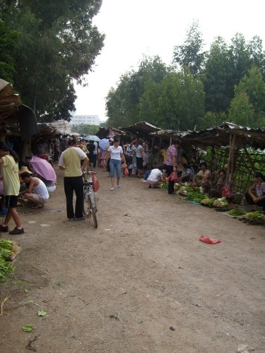 瓷厂的市场挺热闹,在这里卖菜和买菜的不但有瓷厂人,也有附近的居民.一般一点钟就散市了