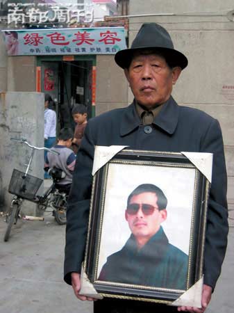 李胜利的父亲李清武手捧儿子遗像