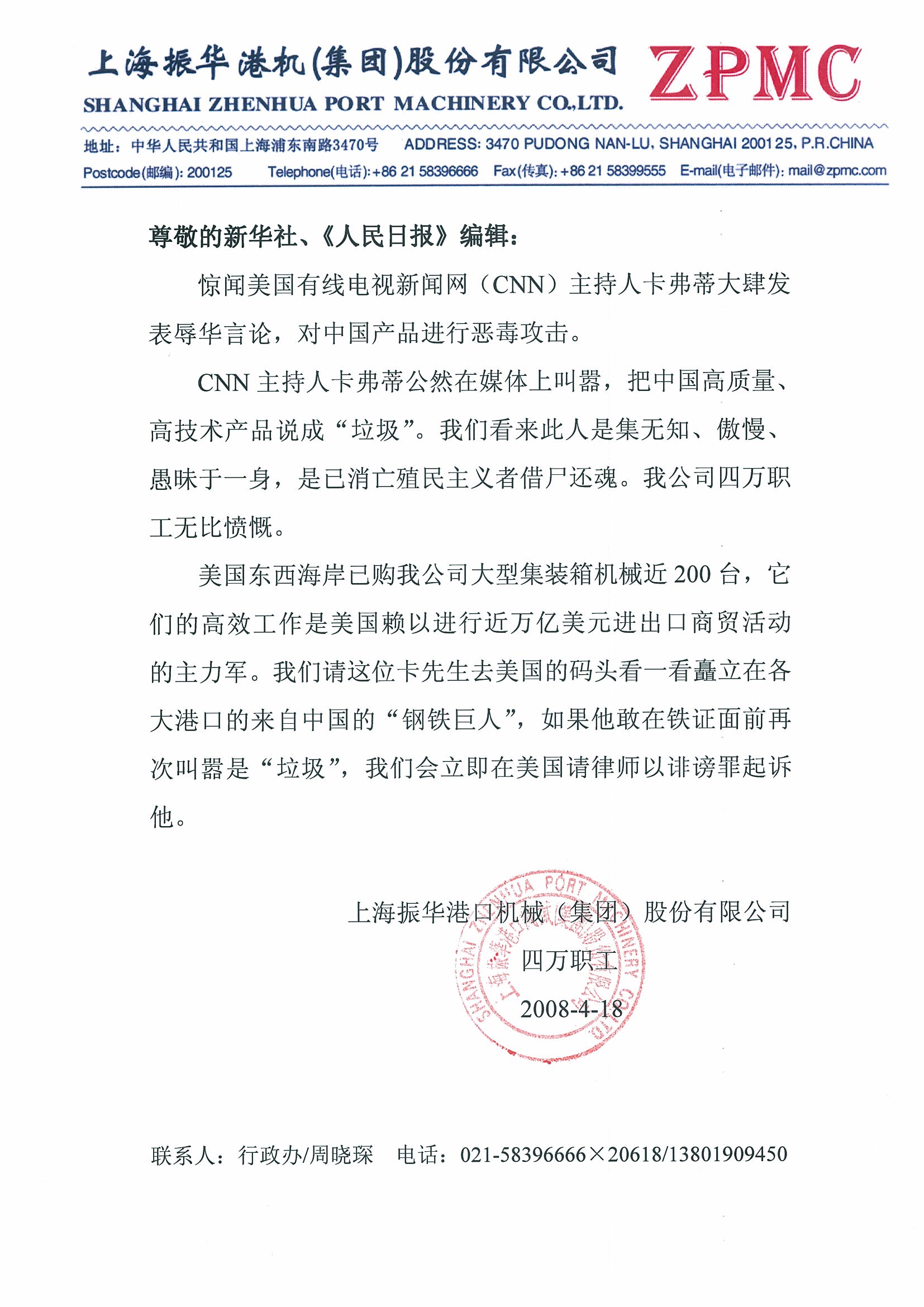allen_su 小学六年级 注册 2007-08-12 消息 381 反馈评分 0 点数 0 2008-04-21 #4 振华港机全体职工对CNN回应 附件 1.jpg 353.7 KB · 查看: 348