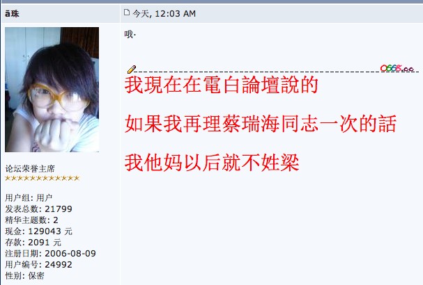 温柔一剑 荣誉会员 荣誉会员 注册 2007-07-28 消息 4,084 反馈评分 105 点数 101 2008-04-30 #110 QUOTE(ā珠 @ 2008年04月30日 Wednesday, 12:28 AM) 你再看看F在 [snapback]2216282[/snapback] 你也是姓梁的吗?