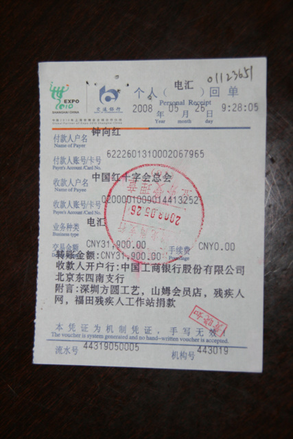 <b>四川人民我支持你们――今天我把特殊党费交了</b>