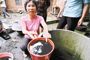 邻近起火厂的茂落区潭莲村村民发现水井的水变成了黑色。关家玉摄[attachmentid=177476]