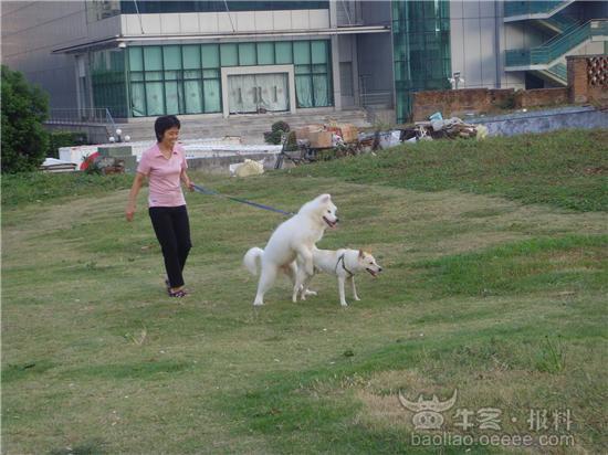 在深南大道旁边的草坪上,这名女子牵着自己家的狗,竟然目睹看着自己家的狗和别人的狗XX,女子看的也是很开心