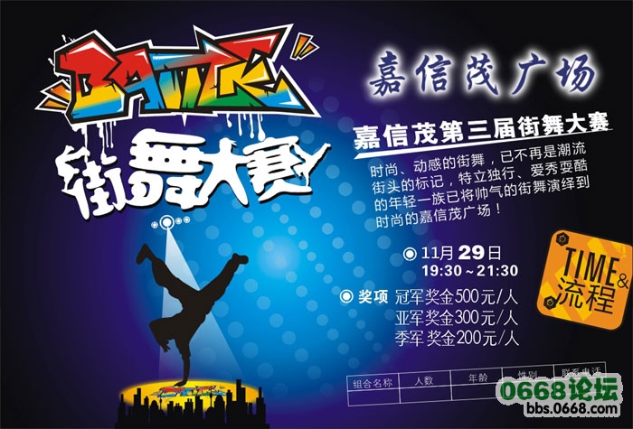 深 深w蓝 高中一年级 注册 2008-05-07 消息 560 反馈评分 0 点数 1 2008-10-28 #1 嘉信茂第三届街舞大赛11月29日开赛 快来报名吧... 附件 嘉信茂第三届街舞大赛11月29日开赛 快来报名吧....jpg 223.8 KB · 查看: 509