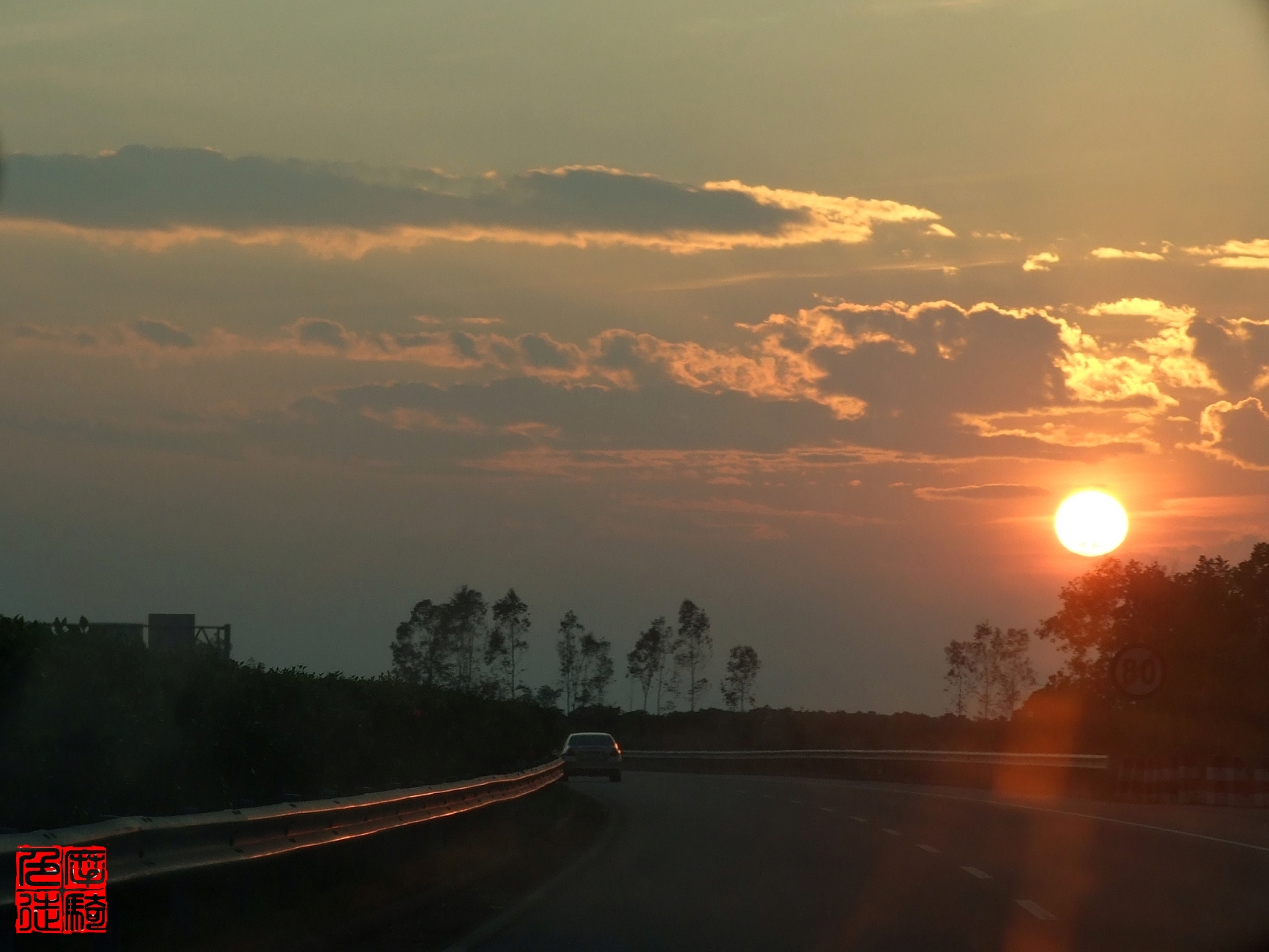交流 高速公路上拍的落日