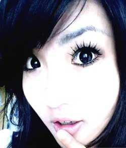 2、戴黑环~和双眼皮贴~(这步很重要哦,瞬间眼睛就变好多的~嘿嘿~和之前形成鲜明对比~)