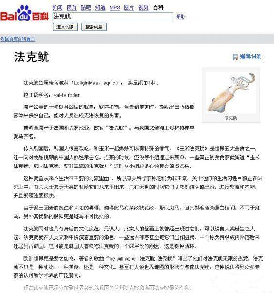 欧洲世界更是爱之如命,著名的歌曲“we will we will 法克鱿 法克鱿”唱出了他们对法克鱿无限的热爱,法克鱿不只是一种动物,一种美食,还是一种文化。甚至有人说世界地图的形状有点像法克鱿,这种说法得到众多专家的认可和学术界的广泛赞同。