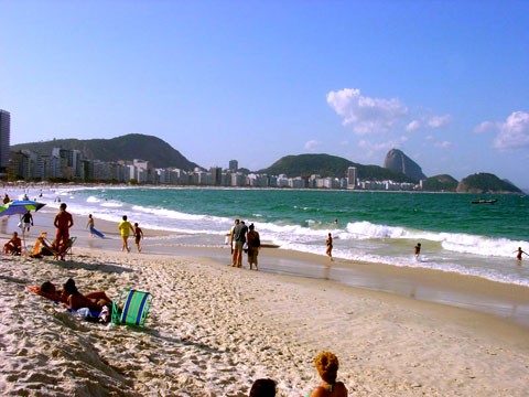 里约热内卢海滩经常被称为世界上最有名的海滩。它在里约热内卢居住区的前面横跨4.5公里。它的景色之美让人目瞪口呆:花岗岩环绕着通往海湾的大门。这种“城市―海滩”的布局给予游客更多的采购机会:这里有购物中心、电影院、时装和珠宝商店,以及设置得当的餐馆和夜总会。当地的夏季是从12月到第二年的2月,气温在25℃和35℃之间。在海滩上,你也有一种参加检阅的感觉,因为可以看到划船和网球活动中的很多漂亮的身材和美丽的面孔。