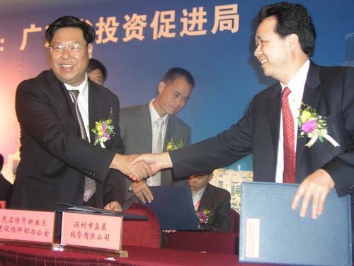 6月11日下午,茂名市在广州香格里拉大酒店举行2009年茂名(广州)投资推介会。茂名市希望通过推介会落实中央关于扩大内需的政策,希望让民资更广泛、更全面参与茂名经济建设,为民营企业发展壮大提供更多机会。茂名市为此提供了千亿元以上的招商引资项目。昨日现场签约的有39个投资项目,投资总额达322.5亿元。省人大常委会副主任邓维龙、副省长万庆良参加了推介会。