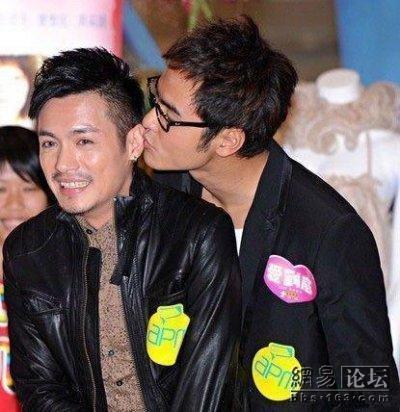 4.吴奇隆与窦智孔 吴奇隆回台湾演电视剧,在中视新戏《牵牛花开的日子》试片会上当众与剧中演弟弟的窦智孔表演男男之吻;吻毕吴奇隆笑得很开心,倒是窦智孔跳得老远,咋声说:“全身鸡皮疙瘩都站起来了,我们拍的是温馨剧耶!”吴蝈蝈啥时候变的这个叫暴强。。。(别把字看反了)