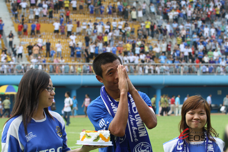 8月12日是队长徐亮的生日,昨天比赛结束后,球迷提前把生日蛋糕送给了他。这是连续两轮后,广药队的两位队长李志海和徐亮相继收到球迷的生日礼物。