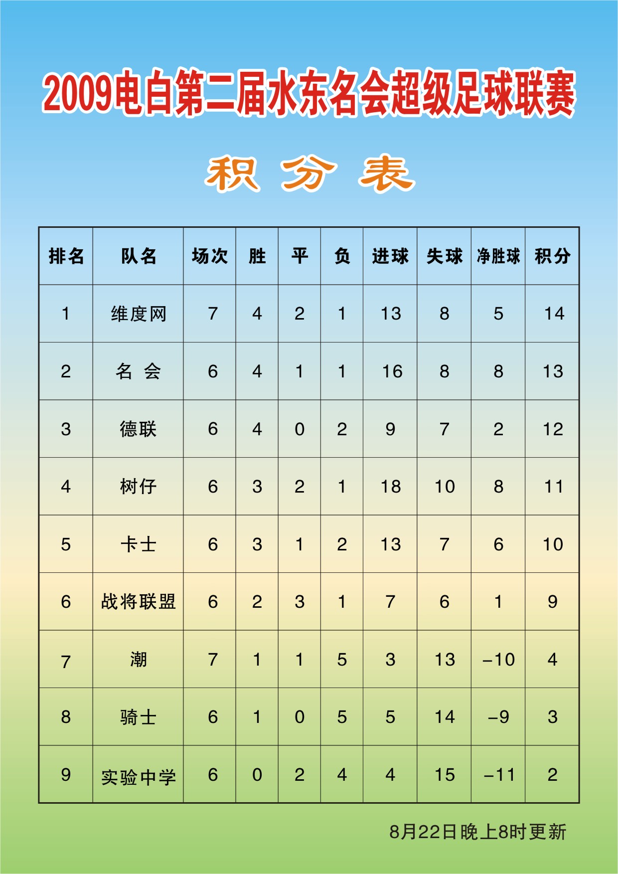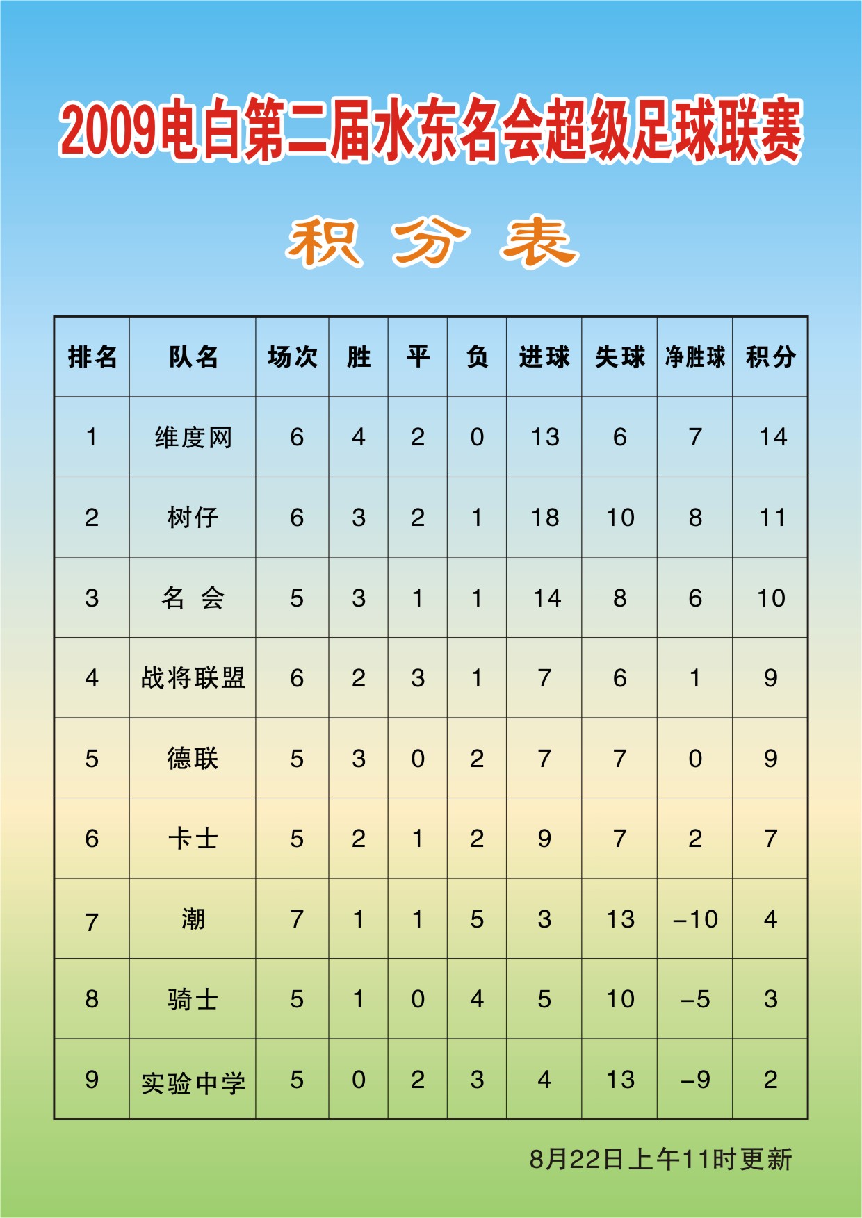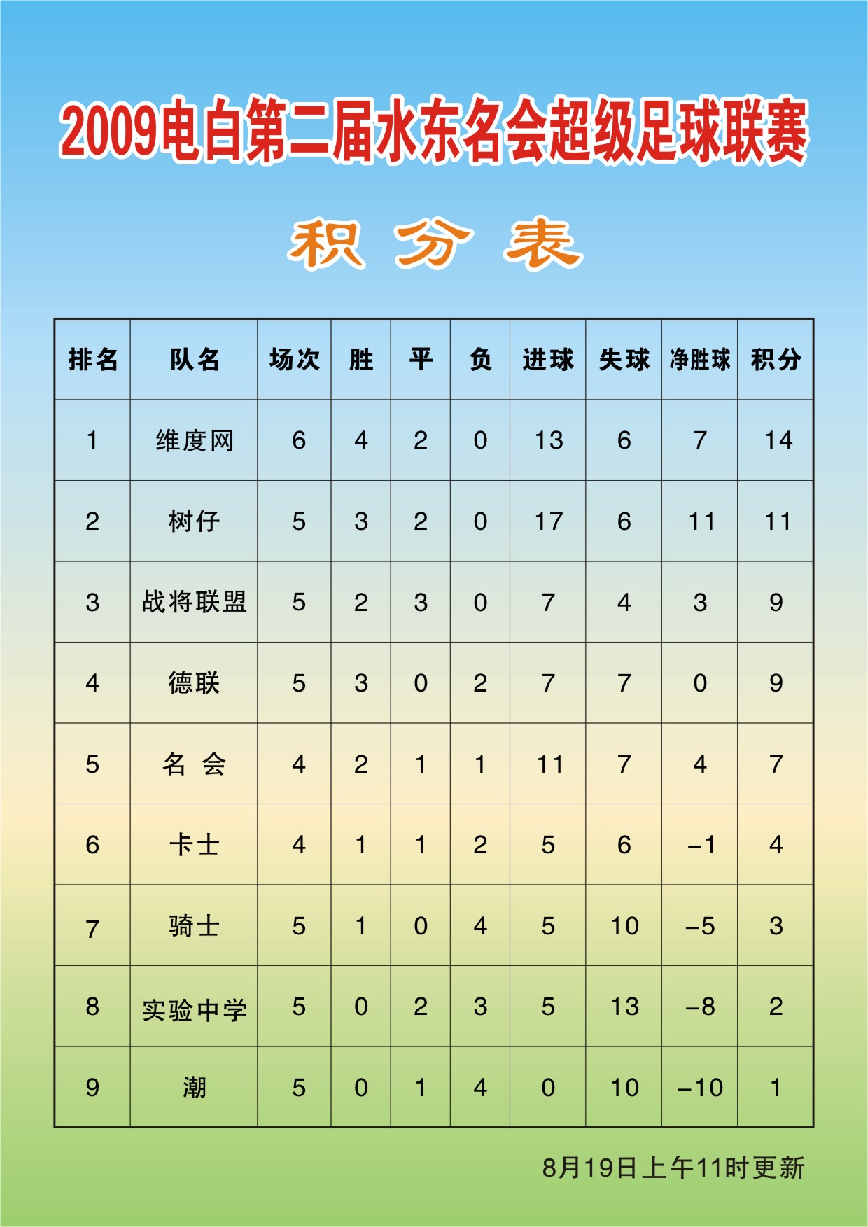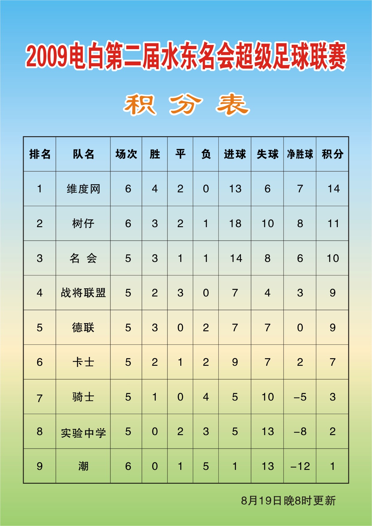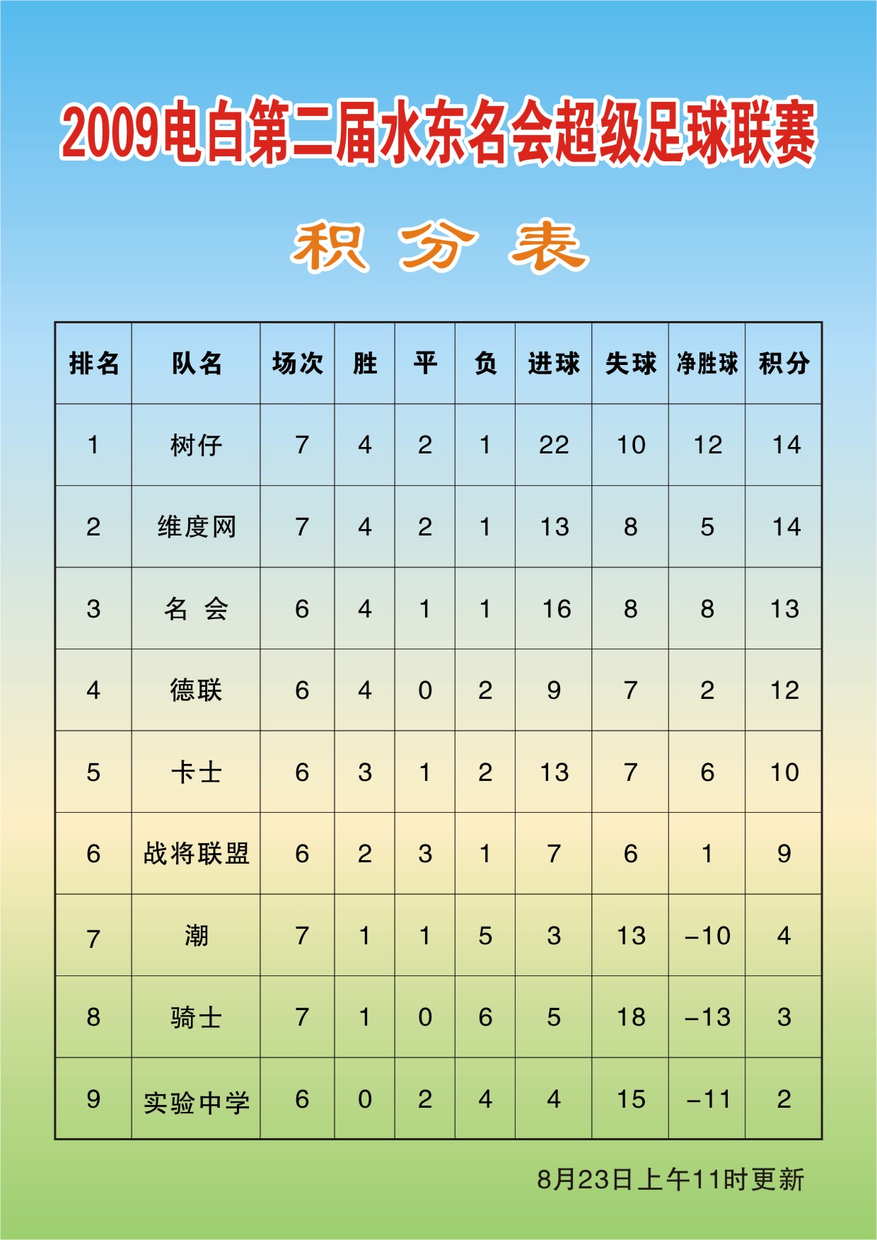 2009年电白县第二届水东名会超级足球联赛-积分表