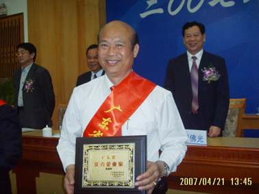 自一九八三年在广东省电白县第二建筑公司组建施工队承包工程开始创业,20多年来,他以“正日照千山,域宽纳万物”的远大胸怀,以“勤劳创业、诚信立业、质量兴业、宁静守业”的人生观和价值观,以“百年老店”的目标境界,守法办企业、诚信待客户、感恩报国家、宽厚容员工、热心助公益,为国家和社会做出了巨大贡献,先后受到了中共中央政治局常委、国务院总理温家宝,中共中央政治局委员、全国人大常委会副委员长、中华全国总工会主席王兆国,中共中央政治局委员、广东省委书记张德江等党和国家领导人的接见。曾荣获“全国五一劳动奖状”、“广东省劳动模范”、“广东省优秀中国特色社会主义事业建设者”、“广东省用户满意杰出管理者”等称号。   还荣获2007年度广东省优秀企业文化突出贡献领导奖。