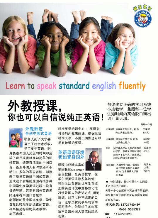 精准英语培训中心 由英语为母语的外教来授课。让学生接受纯正的母语教学 培养学生的英语思维