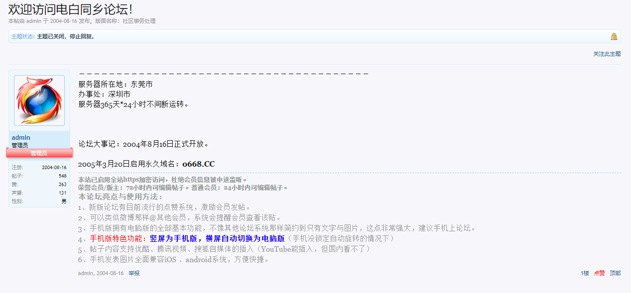 十六载经历成就当下电白论坛。受过打压和迫害,公权力被恶人使用,多次更换论坛域名,有过低谷,却从未放弃。论坛屹立至今,16年见证了家乡电白的所有:政治、经济、民生等。
