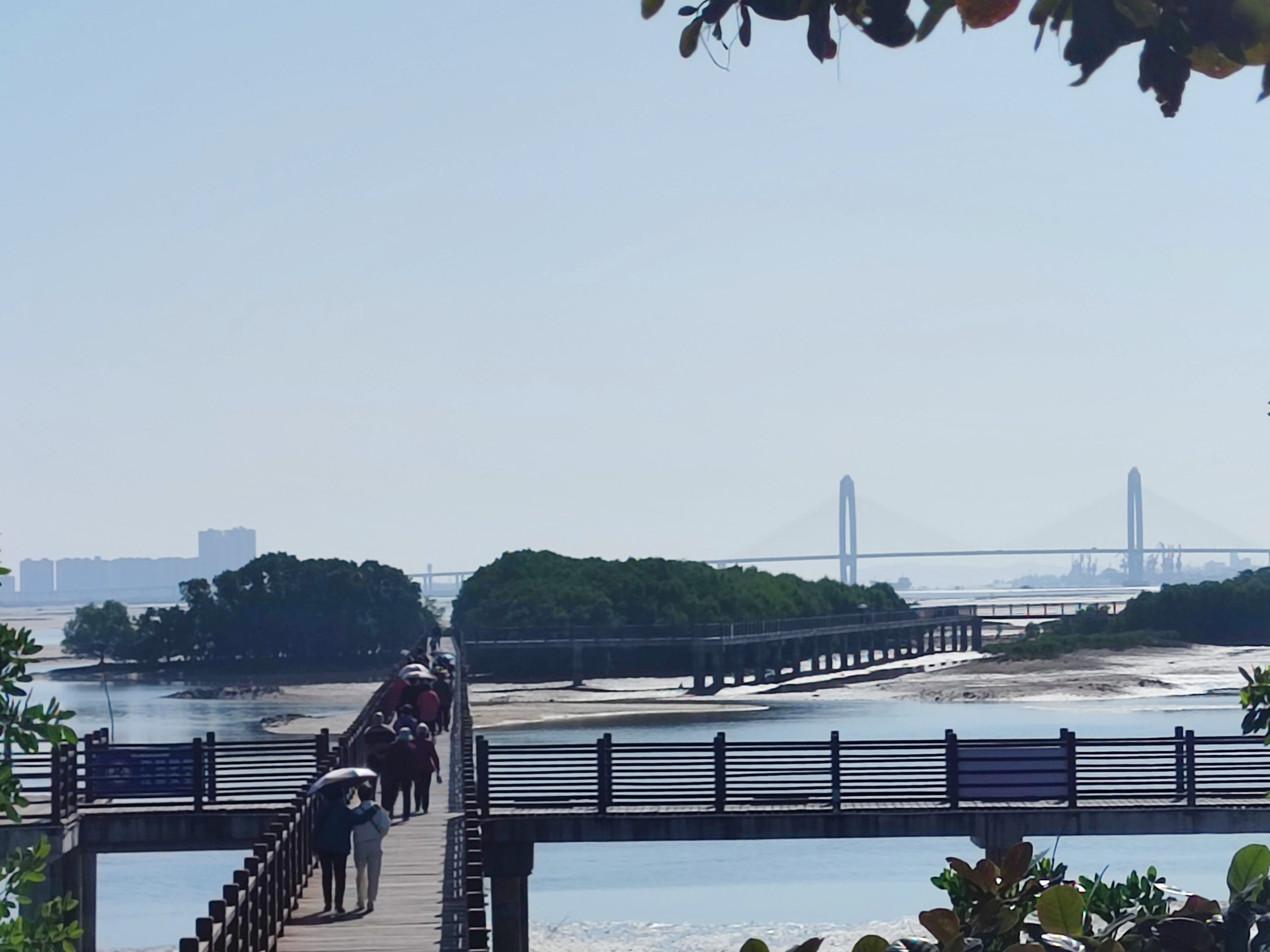 交流 海堤路与海滨大桥处有游巴与游客的到来…