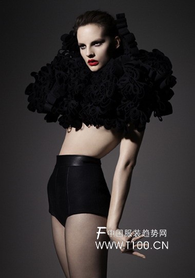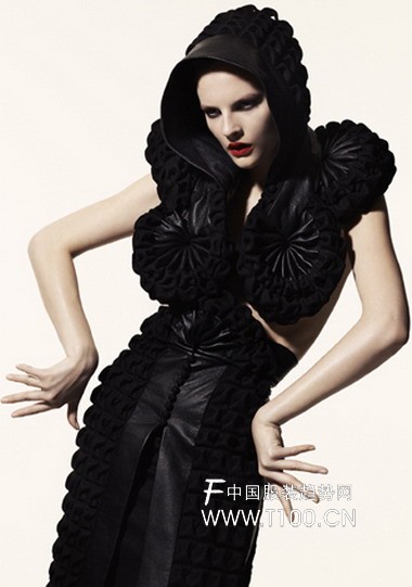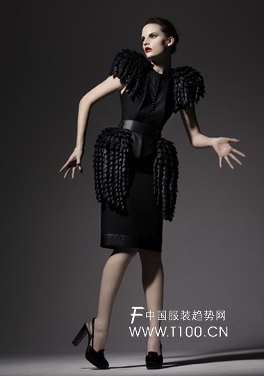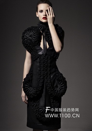 瑞典设计师Helena Hörstedt08秋冬系列作品展显示出更多她在建筑风格把握上的技巧。展示的作品充分体现了她在折纸上的天分以及对轮廓造型的重视。她的第五个展出系列,命名为“Broken Shadow”(破碎的暗影),完全由手工制作,高雅、激进、成熟、富于幻想。交错的奢华在黑暗的色调和褶皱里明晰可见。