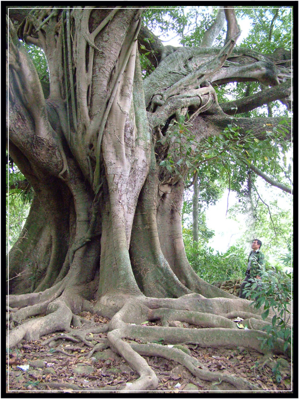 榕树,这种古老的树木,在我的脑里甚至骨髓里都留下了极深的印象!对它对一种说不清道不明的特别感情!也许是童年和少年都生活在它的树阴下的缘故吧。离开家乡N多年了,每当想起家乡,脑海就立即浮现出沙琅榕树(家乡人叫榕木头)的立体身影,树身挺拔,树干参天,树叶遮掩了半个天,大风起时沙沙作响,尤如天上奏的仙乐;树身上还有一个大洞门,洞门上有一个巨大的丫杆,小时经常在上面爬上爬下捉迷藏,累了就在丫上美美的睡一觉。