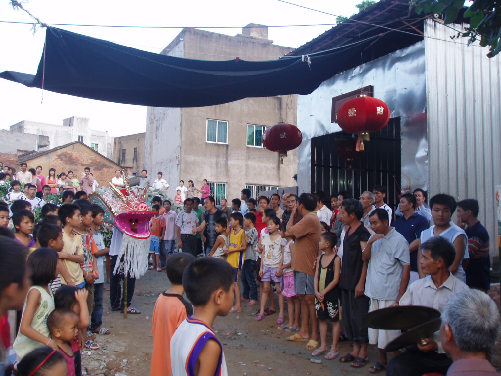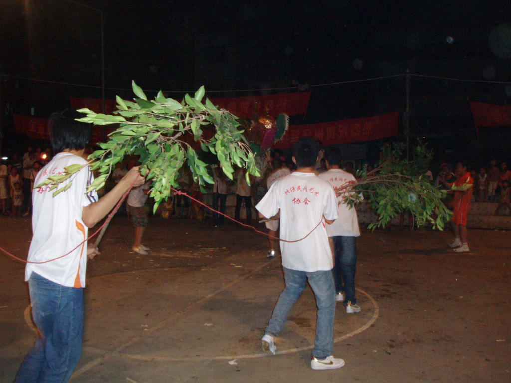 伴和着乡土风味浓烈的民间吹打乐,舞起。龙头威武壮观,银鬓玉角,光彩照人。树仔人认为树木旺树仔。所以龙身用树枝续成。柚子做龙珠在前引舞。龙头昂视、龙珠劲抖,龙身翻腾,龙尾律动。忽跃忽伏、时缓时急,如凌空飞腾,如潜海穿浪,如遨游九天。这群村民用淳朴的舞舞着血脉传承,舞着对上天的敬畏,舞着对祖辈的敬意。