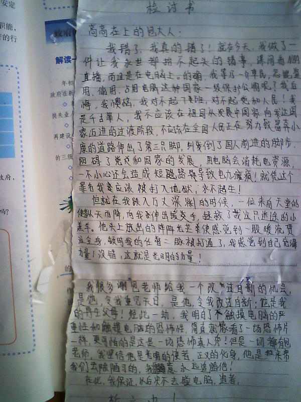 牛B写的检讨
