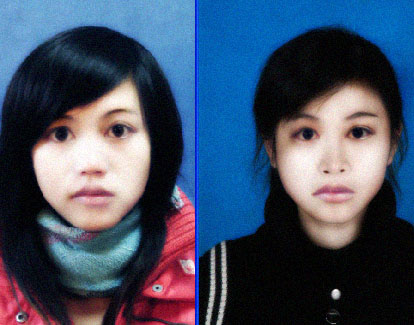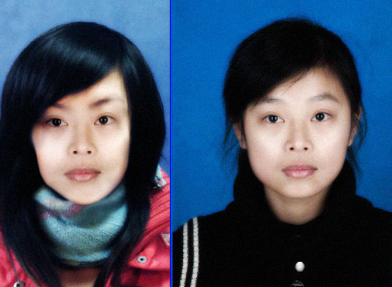 一张是我女朋友的照片,另外一个是我的一个朋友。 现在要请我的朋友帮我女朋友代考,需要交照片。就明天后天要交了。 想请一个高手把两张图P得长相两个人都相似。然后再去洗。真的很急。 那个瘦的是我女朋友,像她多那么一点点就行了。 谢谢了。