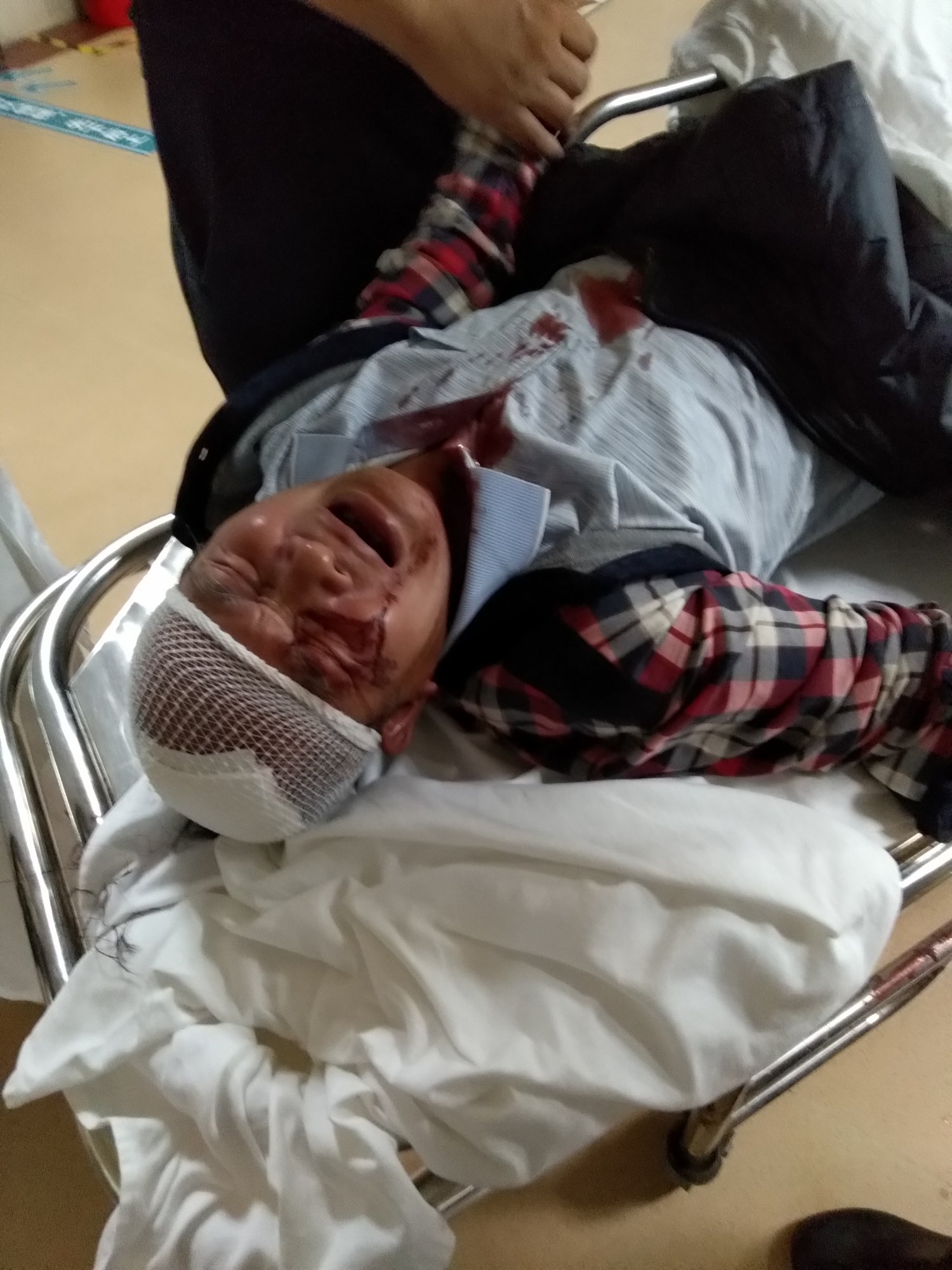 广隆岭村委干部被村霸份子袭击破头入院