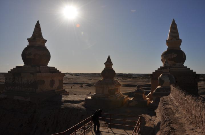 莫高窟一站 莫高窟为国家重点文物保护单位,窟内禁止拍摄。 这一点虽感遗憾,但内心深处为这样严格的保护措施感到欣慰。 跟随导游的讲解,脚下踏着是数千年的历史,感受着古文明的点滴 此站景点既不能拍照,所以干脆就在门外让摄友帮我随拍