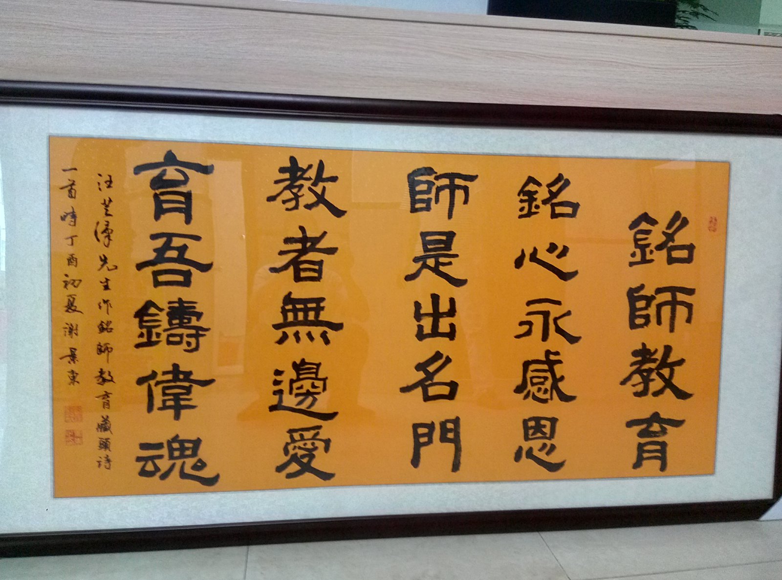 汪洋大海 荣誉会员 荣誉会员 注册 2011-03-01 消息 12,156 反馈评分 348 点数 191 年龄 67 性别 男 2017-05-07 #2 我已帮该辅导机构老师请到电白书法名家谢景东老师用隶书挥毫并用镜框装裱,预计可在今晚五点半钟前搞定,届时取到发图上来与各位分享。