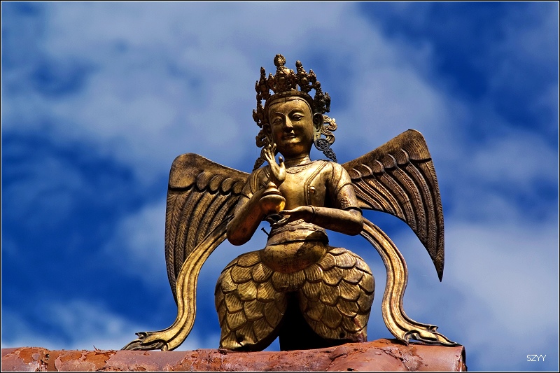 八世达赖在此基础上扩建了恰白康(阅览室)、康松司伦(威镇三界阁)、曲然(讲经院),把旧有的水塘开挖成湖,按汉式亭台楼阁的建筑风格,在湖心建了龙王庙和措吉颇章宫(湖心宫),两侧架设了石桥。