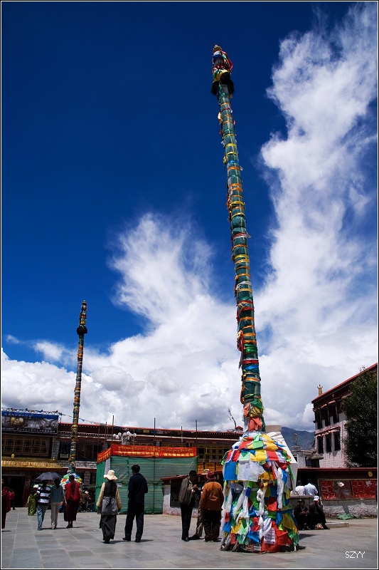 游览大昭寺后,回到广场,然后上药王山拍布宫,天气很热,可是由于怕感冒,我们不敢脱衣服,在广场上休息的时候,一阵阵风吹过来,有些凉。