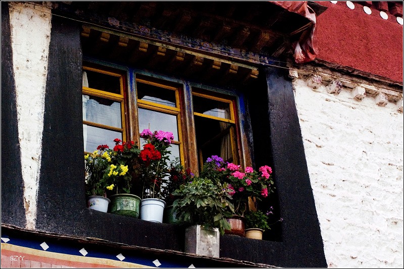 在西藏,无论寺庙还是民居,鲜花随处可见,这体现了藏族对生活的热爱。