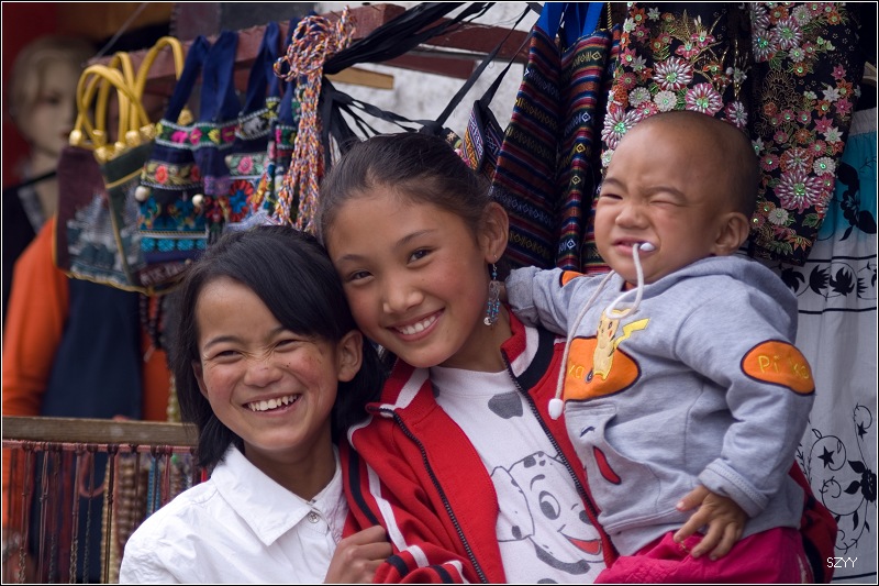 中间这位小姑娘长大一定是个大美女,旁边这位小伙子对比可真够强烈的
