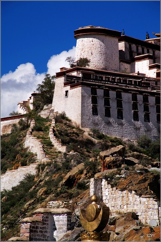 去布达拉宫,门票买不到,每天只卖出700张,当天即使买到也是第二天的票。排队买票要五六个小时,黑市票炒到500多一张,走的时候luck21cn兄介绍让我们到了拉萨,找西藏摄影家协会的副主席帮忙,那是他的朋友.可是我们想了想,还是不要给人添麻烦了,再说对宗教了解不多,布宫里面也不让拍照,还是决定暂时不进去了,回程的时候再看情况。在外面拍了几张布宫的照片。然后去了罗布林卡。